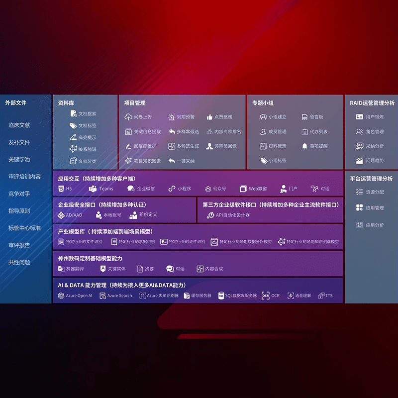 医疗器械产品上市前,,,,要熟悉严格与繁复评审标准,,,,整理分析监管机构指导文件中的海量信息。。。企业急需一个智能化解决方案,,,,提升知识管理效率,,,,提高评审通过率,,,,以提升其市场竞争力。。